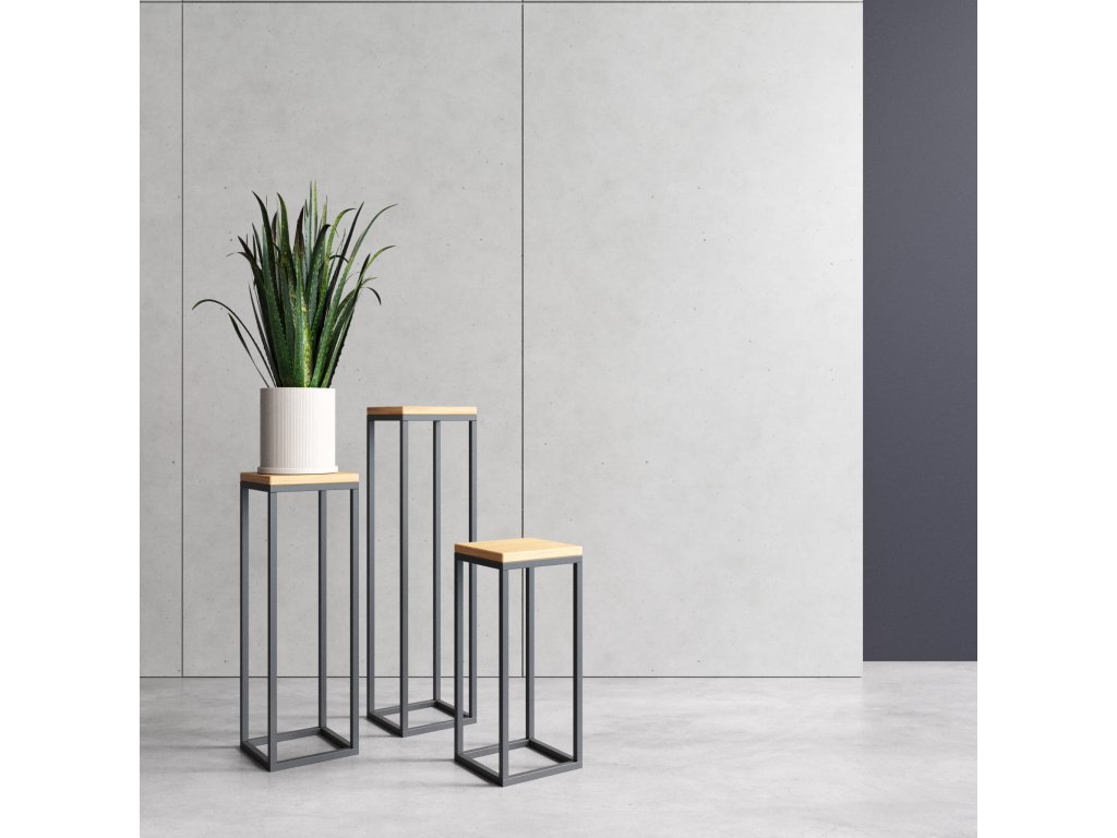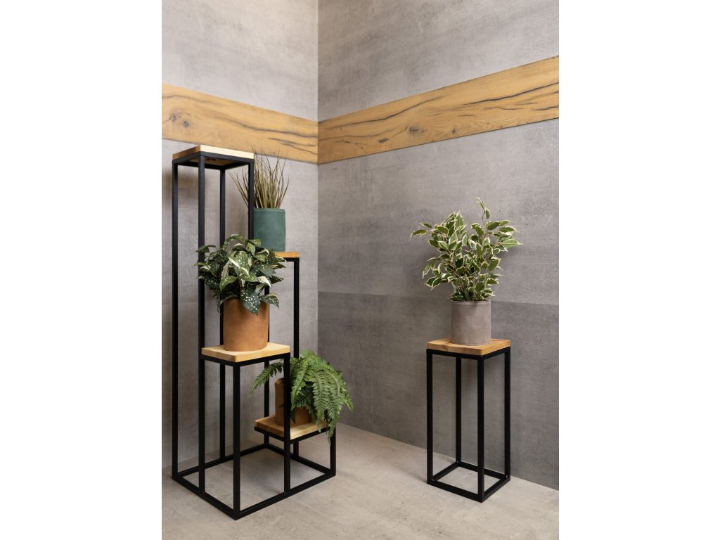Stojan na květiny je vyroben z kovové konstrukce s práškovým nástřikem v černé barvě s dřevěnou policí na květiny.
