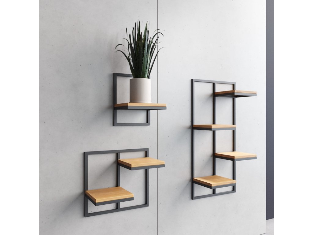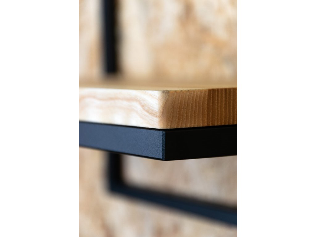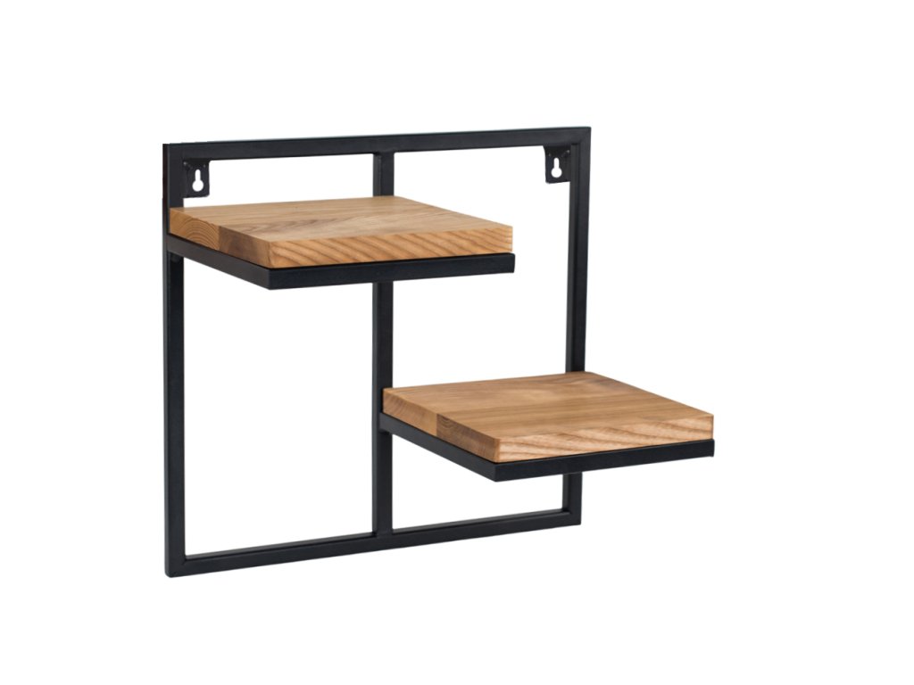 Kovový stojan na květiny s umístěním na zeď v kombinaci s dřevěnou policí zaujme v každém interiéru. Dřevěná police o rozměru 20 x 20 cm.