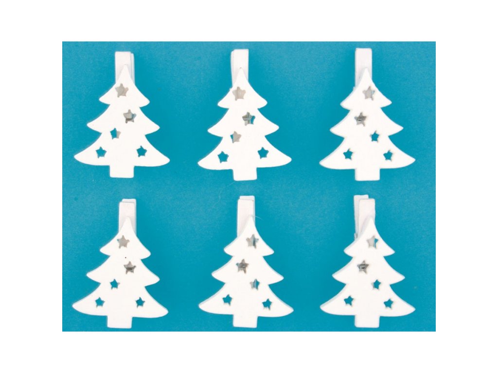 Stromek dřevěný na kolíčku 3 cm, bílý, 6 ks