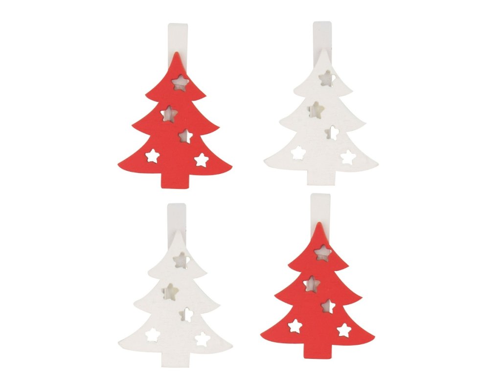 Stromek dřevěný na kolíčku 4,5 cm, červený a bílý, 4 ks