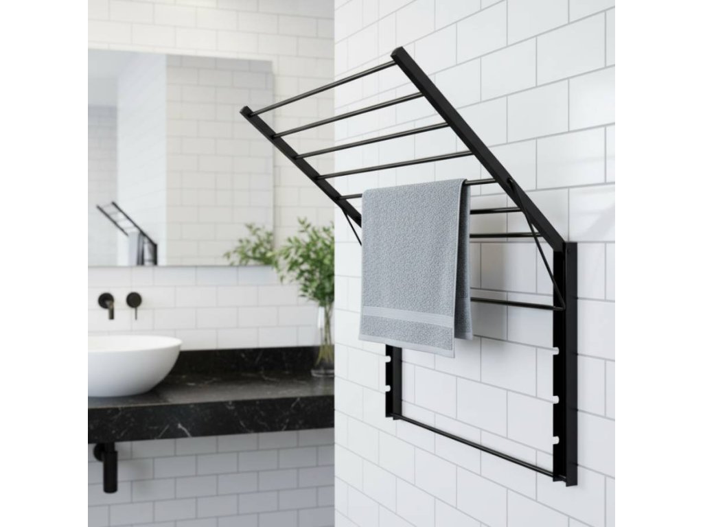Sušák na stěnu polohovací Favorit - barva černá - šíře 80 cm