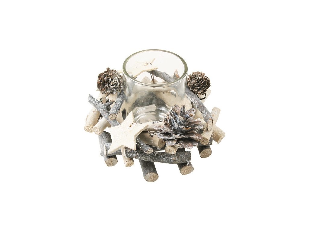 Svícen z větviček se skleněným kelímkem 13 cm