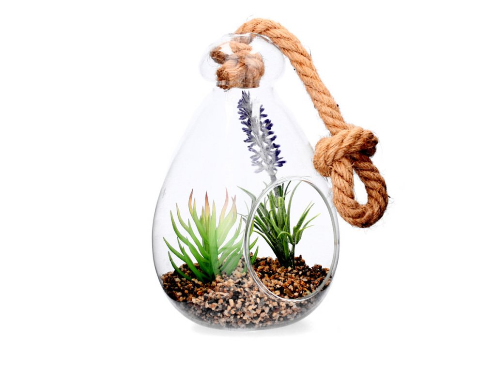 Pěstování rostlin v pokojových sklenících se vrací do módy. Umělé sukulenty nepotřebují zálivku ani jinou péči a stanou se tak nenáročnou tropickou minizahrádkou, která zútulní váš domov a nadchne návštěvu. Dekorace působí svěže a velmi věrohodně. Součástí je lano, díky kterému dekoraci můžete zavěsit na garnýž nebo terasu. Ozdobíte ní také police, komody nebo jídelní stůl. Parametry rozměr skleněné baňky: 12 x 11 x 18 cm materiál: skloDiskuze