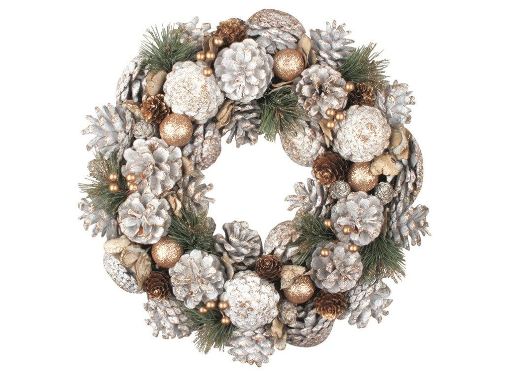 Věnec z šišek a jehličí se zlatými dekoracemi 34 cm
