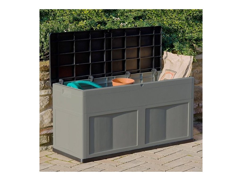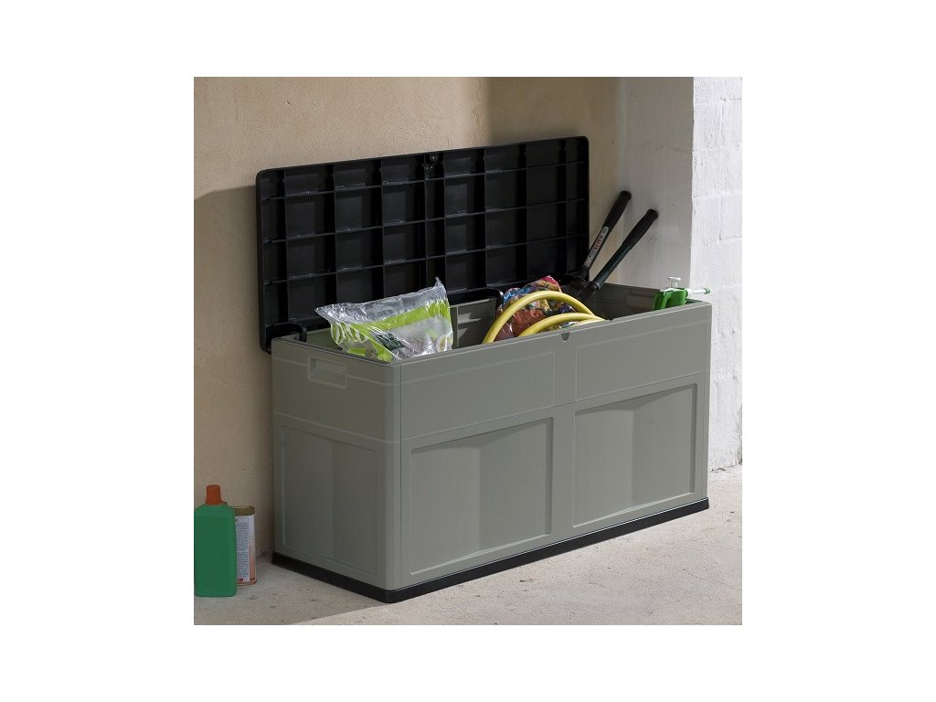 Multifunkční kvalitní plastová zahradní bedna slouží k uschování nejrůznějších předmětů na zahradě, k úschově zahradních polstrů, nářadí i hraček apod..