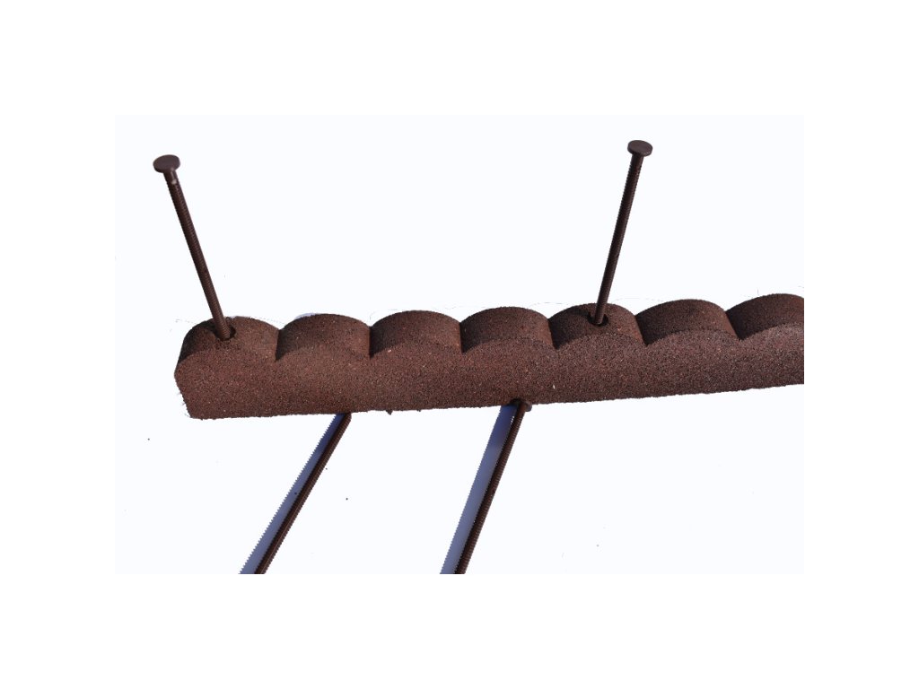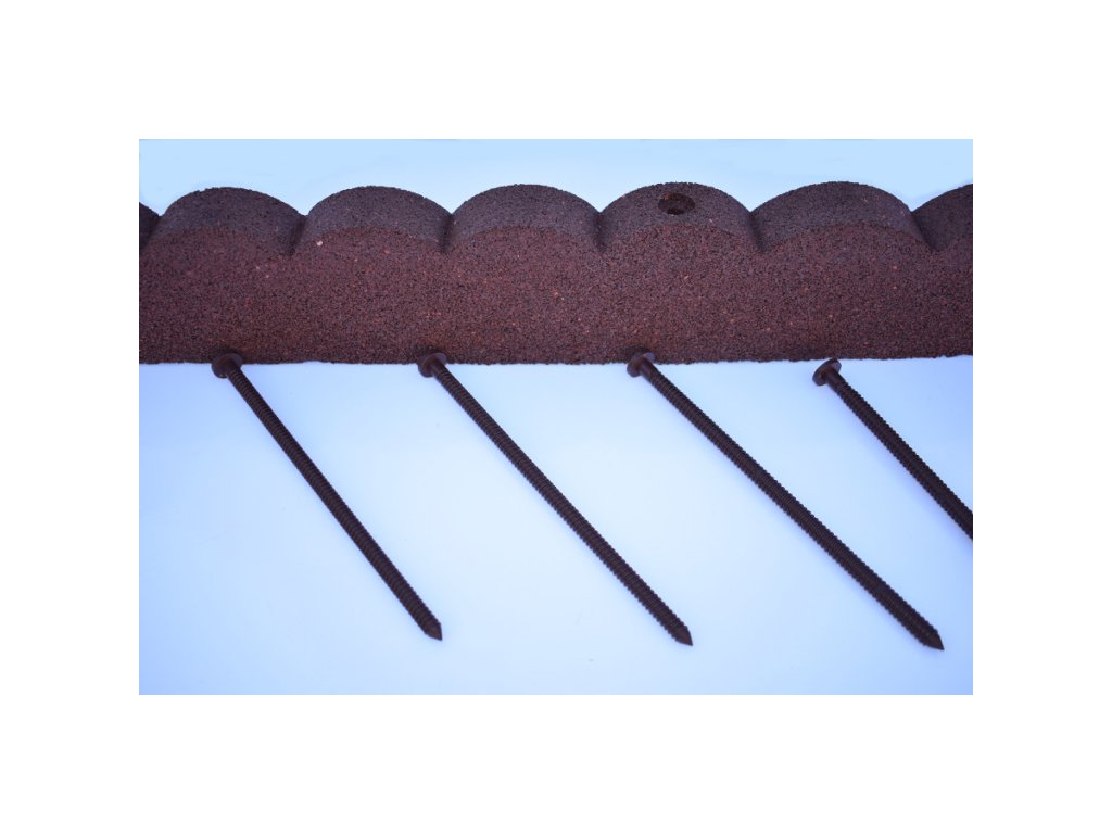 Obrubník upevníte do země díky kolíkům, které jsou součástí balení. Každé balení gumového obrubníku obsahuje 4 upevňovací kolíky o délce 30 cm.
