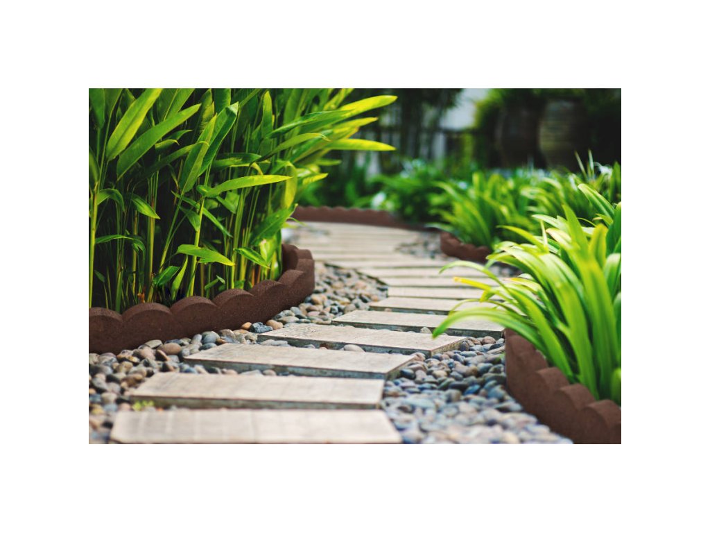 Dekorativní zahradní obrubník z gumy pro oddělení trávníku od záhonu.