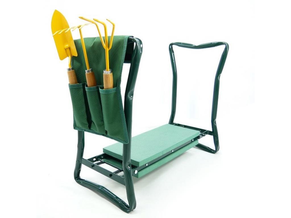 Kvalitní zahradní vychytávka která ulehčí vaší práci na zahradě. Multifunkční stolička, která se po otočení nabízí jako zahradní klekátko. Součástí je textilní kapsa, kterou použijete pro odložení potřebného nářadí (nářadí z obrázku není součástí). Měkký molitanový povrch z obou stran sedátka nebo klekátka.