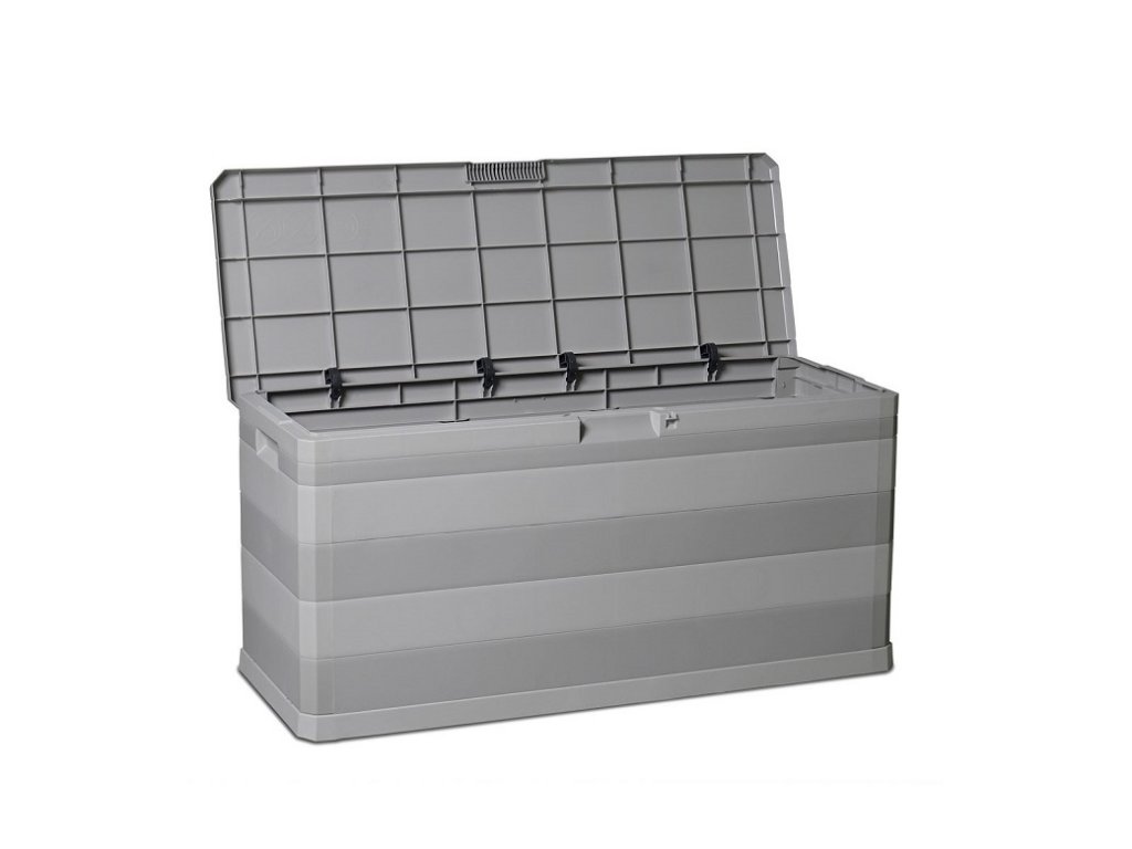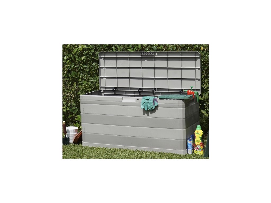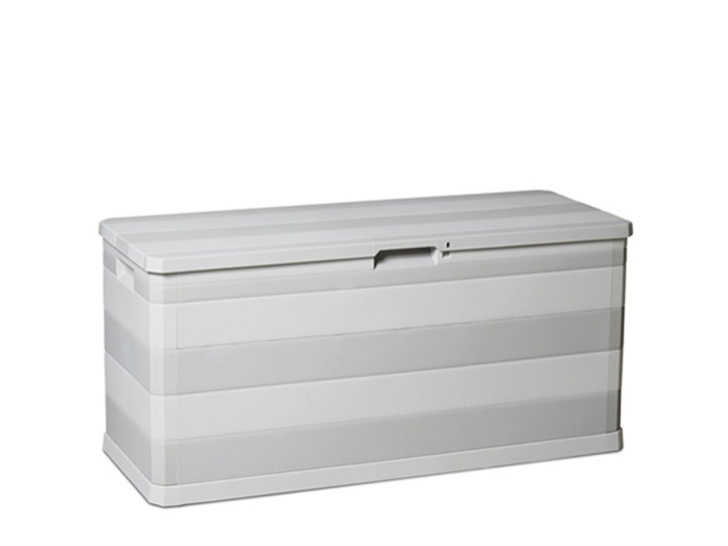 Multifunkční kvalitní plastová zahradní bedna pro uschování nejrůznějších předmětů na zahradě, k úschově zahradních polstrů, nářadí i hraček apod.. Je vhodná pro venkovní i vnitřní využití. Kvalitní úložná bedna je opatřena místem pro uzamknutí visacím zámkem (zámek není součástí).