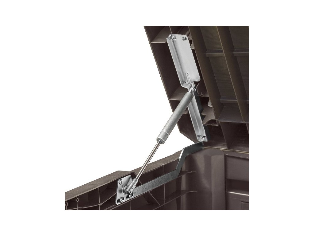 Úložný box je odolný vůči povětrnostním vlivům a nízkým teplotám a proto jej můžete umístit nejen do interiéru, ale i exteriéru. Zahradní box je možné uzamknout (zámek není součástí balení). Box je vybaven zavíracím mechanismem, což zabrání samovolnému zavření víka.
