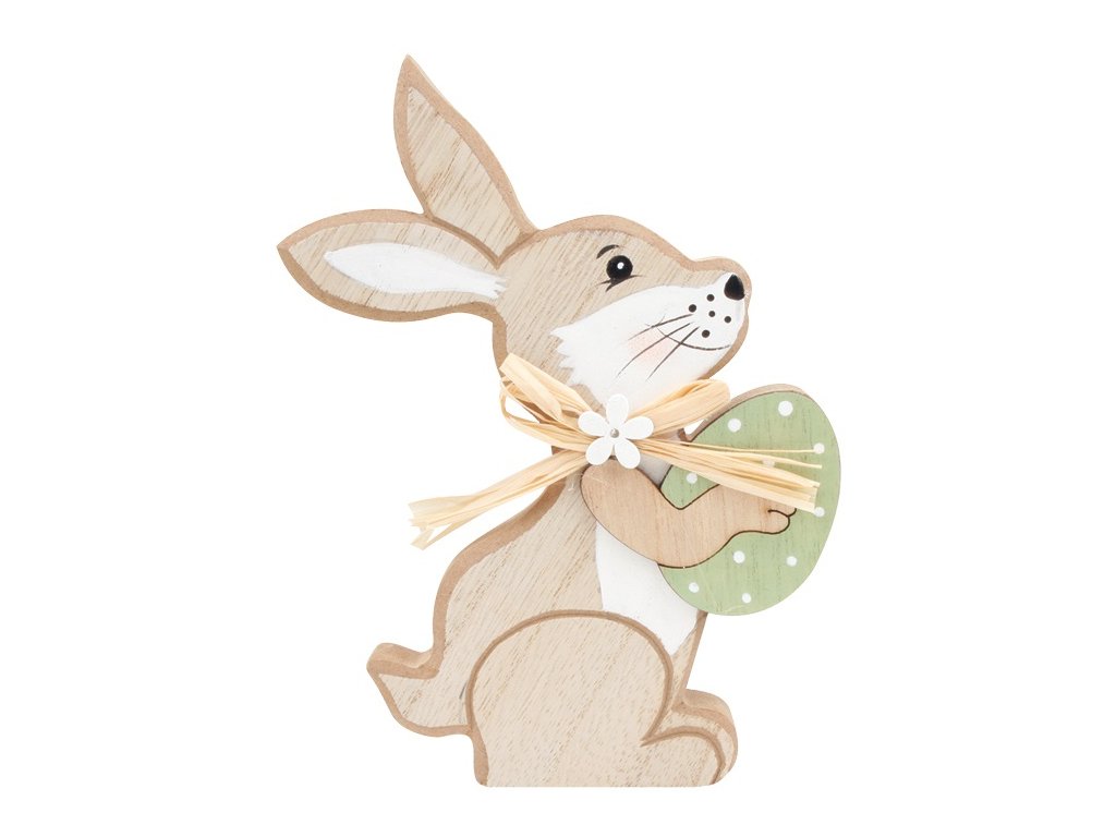 Zajíc dřevěný s vajíčkem na postavení 15 cm