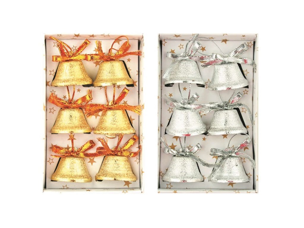 Zvonečky na zavěšení. 6 ks v krabičce. Průměr zvonečku 3 cm. Barva: zlatá, stříbrnáDoplňkové parametry
